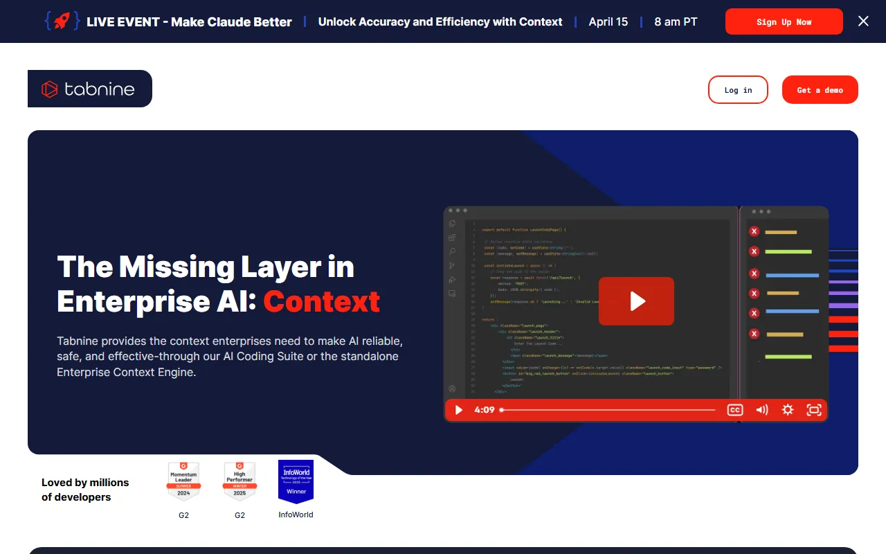 The Code Assistants market is increasingly competitive, with new entrants appearing regularly alongside established players. In this landscape, Tabnine carves out its position by focusing specifically on the needs of professionals, teams, and everyday users rather than trying to serve every possible use case. This focused approach means the features you find are directly relevant to AI-powered assistance and automation rather than being diluted across unrelated functionality.