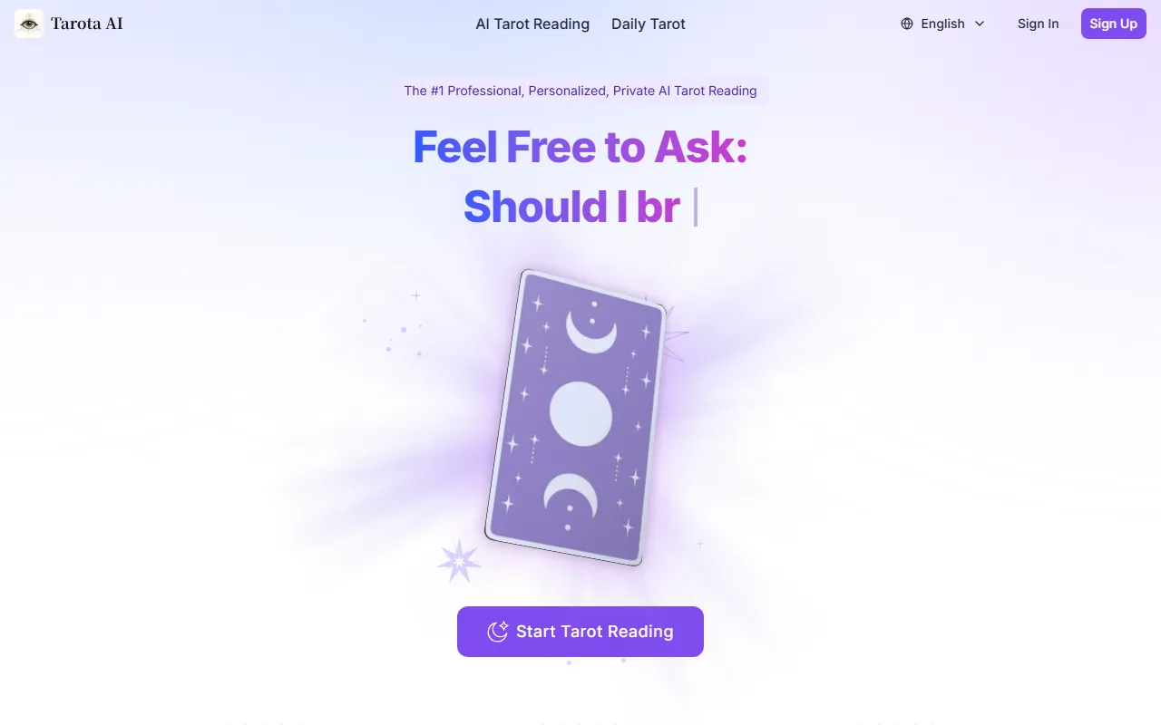 For professionals, teams, and everyday users seeking smarter ways to handle AI-powered assistance and automation, Tarota AI presents an intriguing proposition. Tarota AI: personalized AI tarot readings offering spiritual insights, guidance, and self-discovery anywhere. The platform aims to bridge the gap between complex AI technology and practical, everyday utility, making advanced capabilities accessible without requiring deep technical expertise.