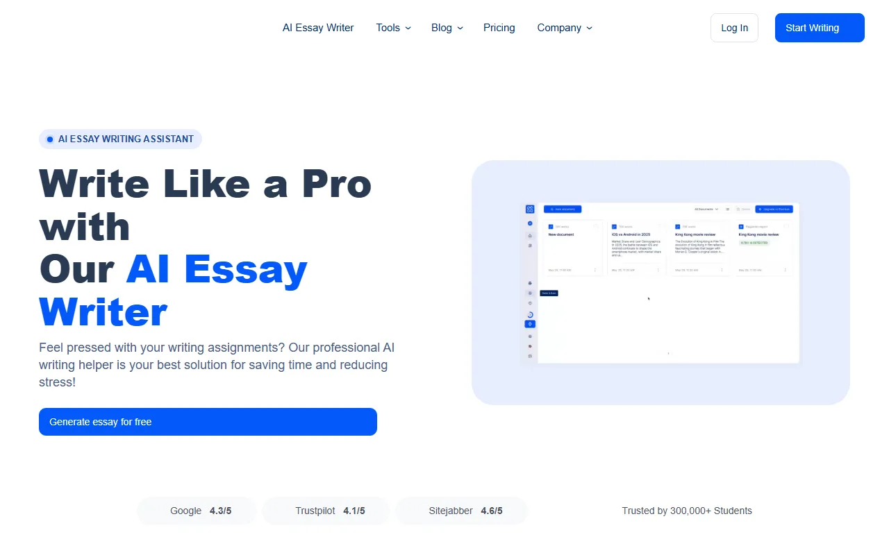 Transform your writing process: generate essays quickly with AI-driven assistance and research support.