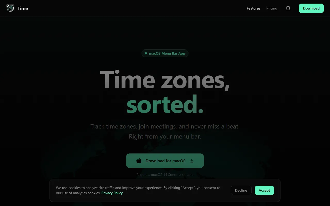 Time: macOS menu bar app simplifying global scheduling with time zones, calendar sync, and meeting links.