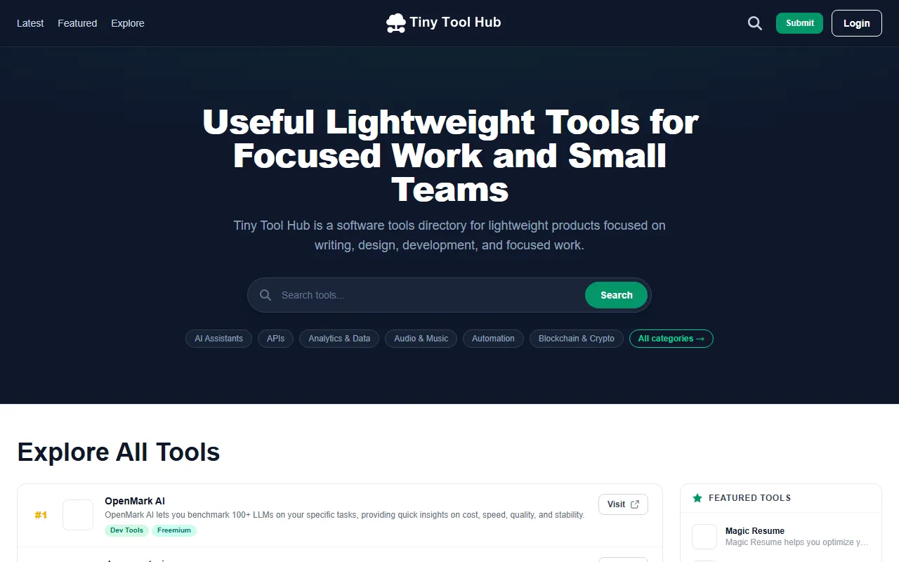 Tiny Tool Hub offers a curated collection of compact, powerful AI tools to boost productivity efficiently.
