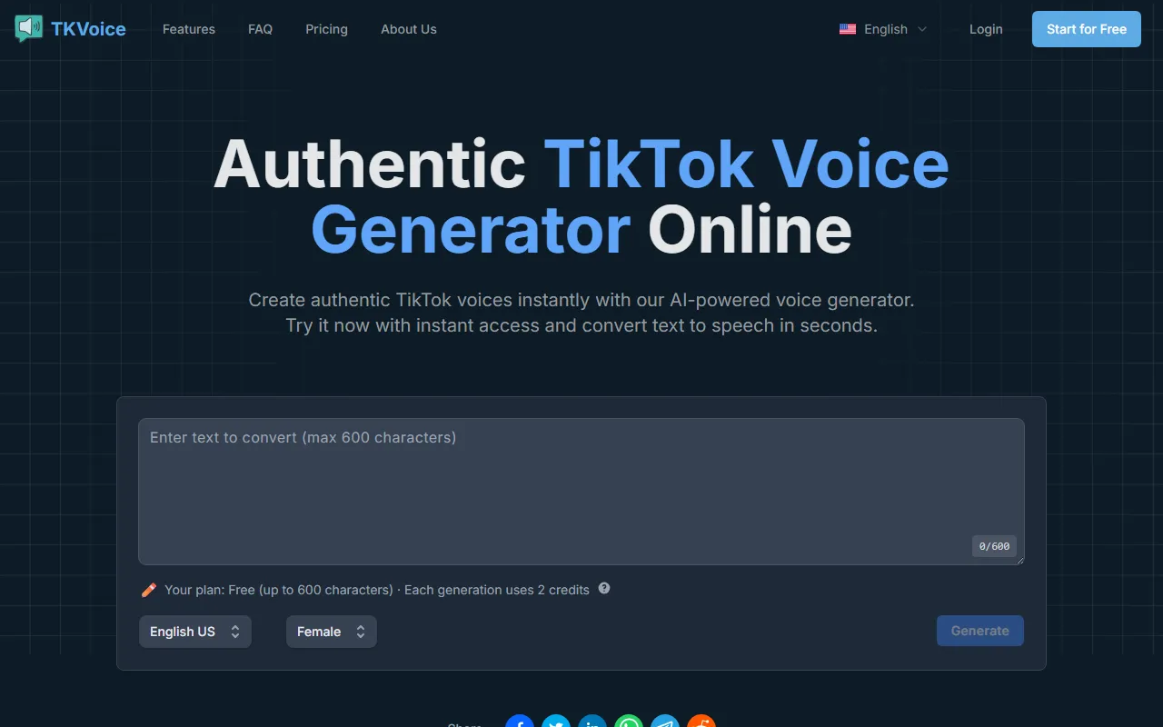 TKVoice generates authentic TikTok voices in 7 languages with 37 styles, unlimited use.