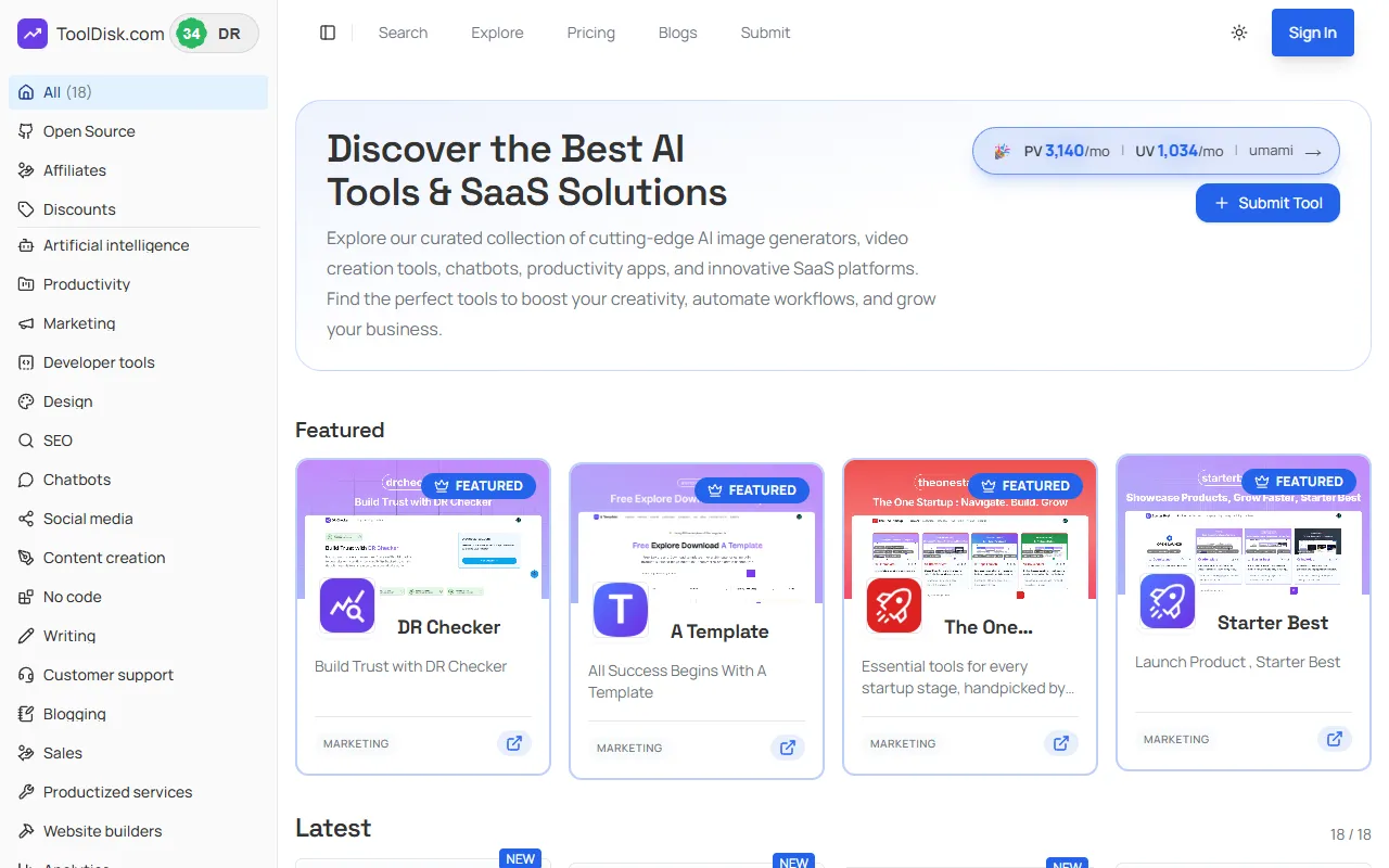 ToolDisk.com is a curated directory featuring top AI tools and SaaS solutions for productivity, automation, and growth.