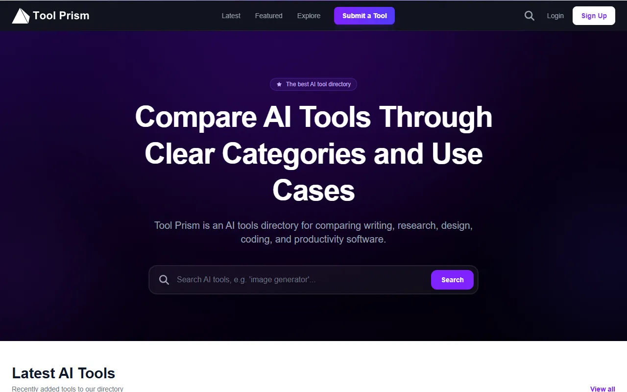 Tool Prism: AI-powered platform simplifies software search with curated tools for productivity and marketing.