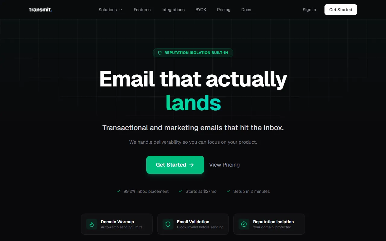 Transmit offers isolated email sending infrastructure for high deliverability and reputation control.