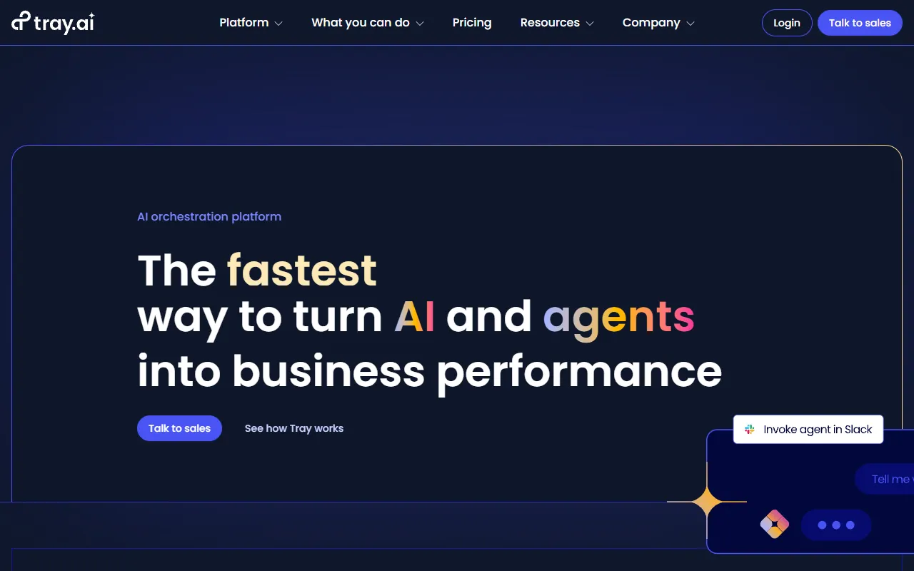- Enterprise integration: Tray.ai provides robust enterprise integration functionality, allowing users to automate with precision and efficiency. This feature is powered by advanced AI models that adapt to your specific use case and improve over time based on your interactions.