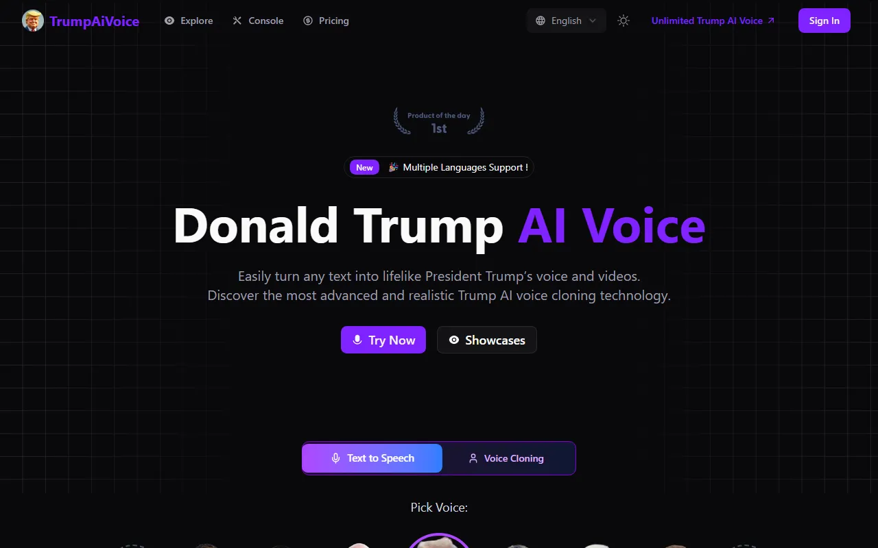 Trump AI Voice enters the AI Video arena as a purpose-built AI solution for video creators, filmmakers, and social media managers. Trump AI Voice turns text into lifelike voice, video, and song MVs with famous character voices. In a market crowded with generic tools, Trump AI Voice distinguishes itself through its specialized focus on delivering measurable results in video production and editing and a user experience designed to get you productive from day one.