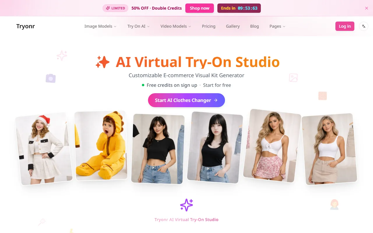 Tryonr: Free AI virtual try-on for realistic, instant outfit previews without registration.