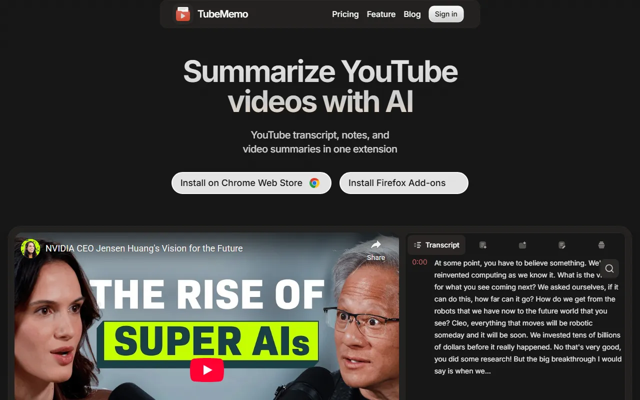 TubeMemo lets you take timestamped notes, summarize, and create study tools from YouTube videos effortlessly.