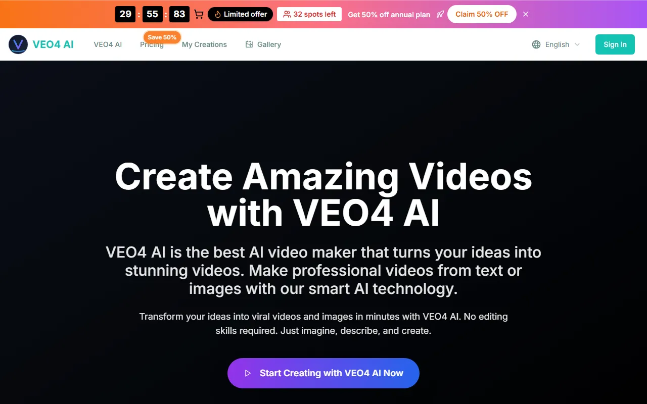 In terms of pricing, veo4 ai follows a free model, making it accessible to everyone regardless of budget. There are no upfront costs or hidden fees. Users can sign up and start using the platform immediately without entering any payment information. This makes it an excellent choice for individuals, students, and small teams who want to explore AI-powered video creation and editing solutions without any financial commitment or risk.