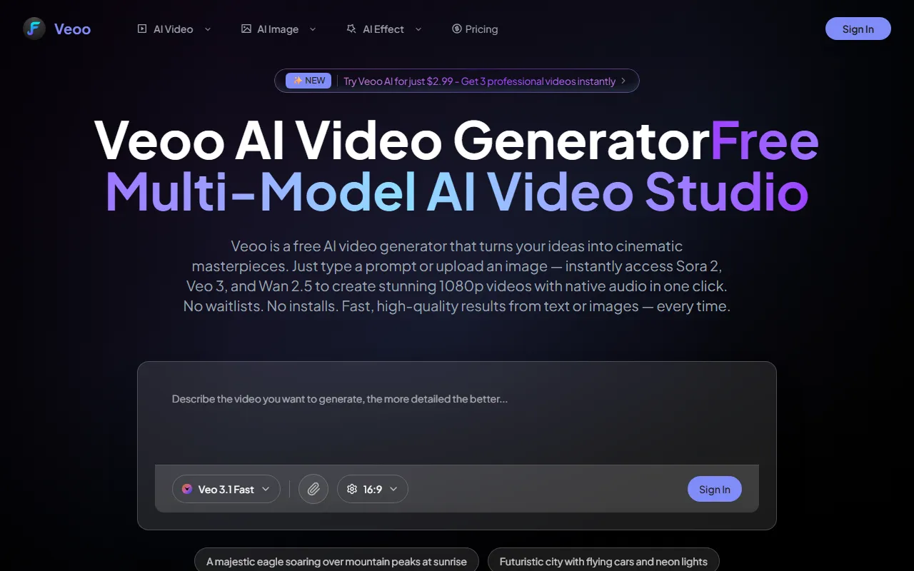 Veoo is an all-in-one AI platform creating cinematic, synced audio-video clips from text or images fast.