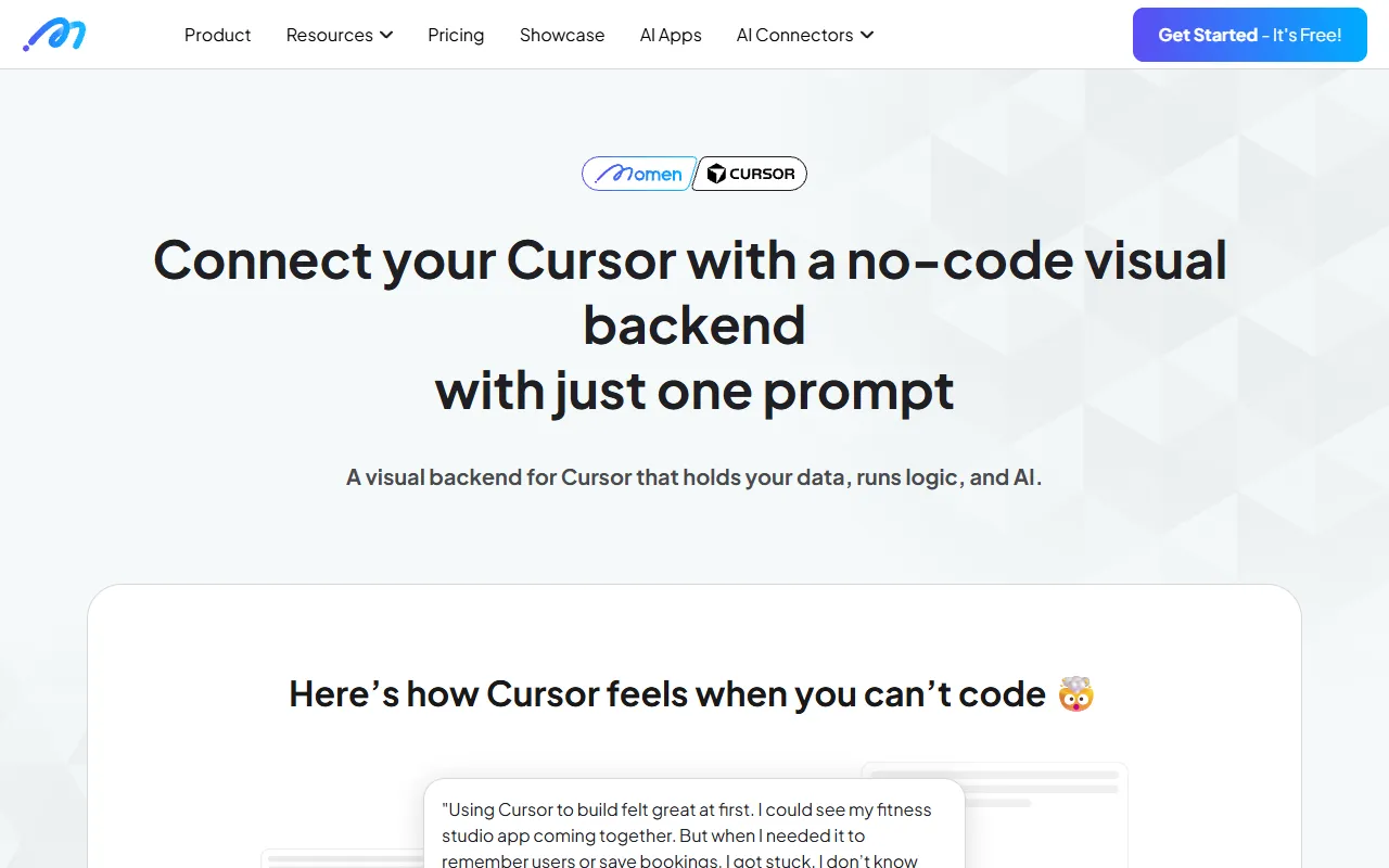 Momen visualizes and manages Cursor backends with no-code AI, data, and payment workflows.
