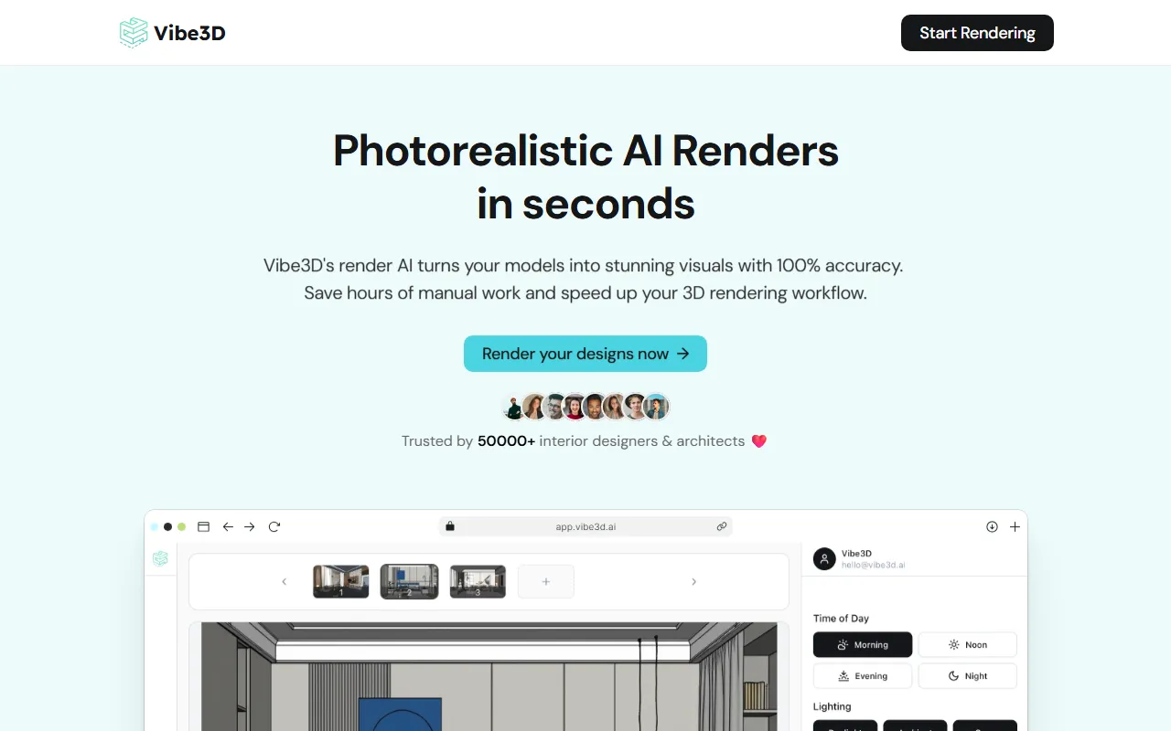 Vibe3D: AI-powered tool creating ultra-realistic interior renders with easy edits and smart prompts.