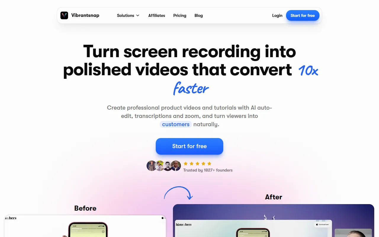 VibrantSnap creates quick, polished product demo videos with built-in analytics and auto-editing.