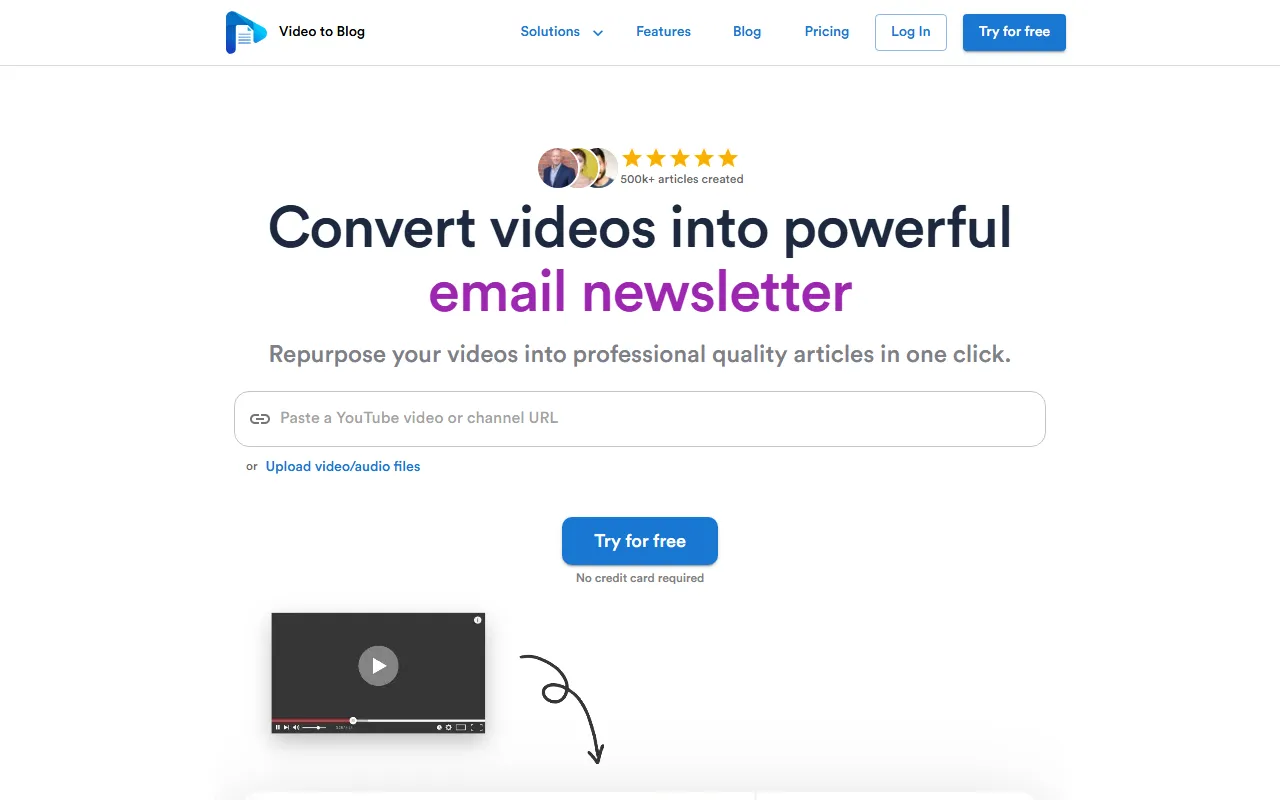 AI tool converts videos into SEO-friendly blog posts with screenshots, links, customization, and seamless website publishing.