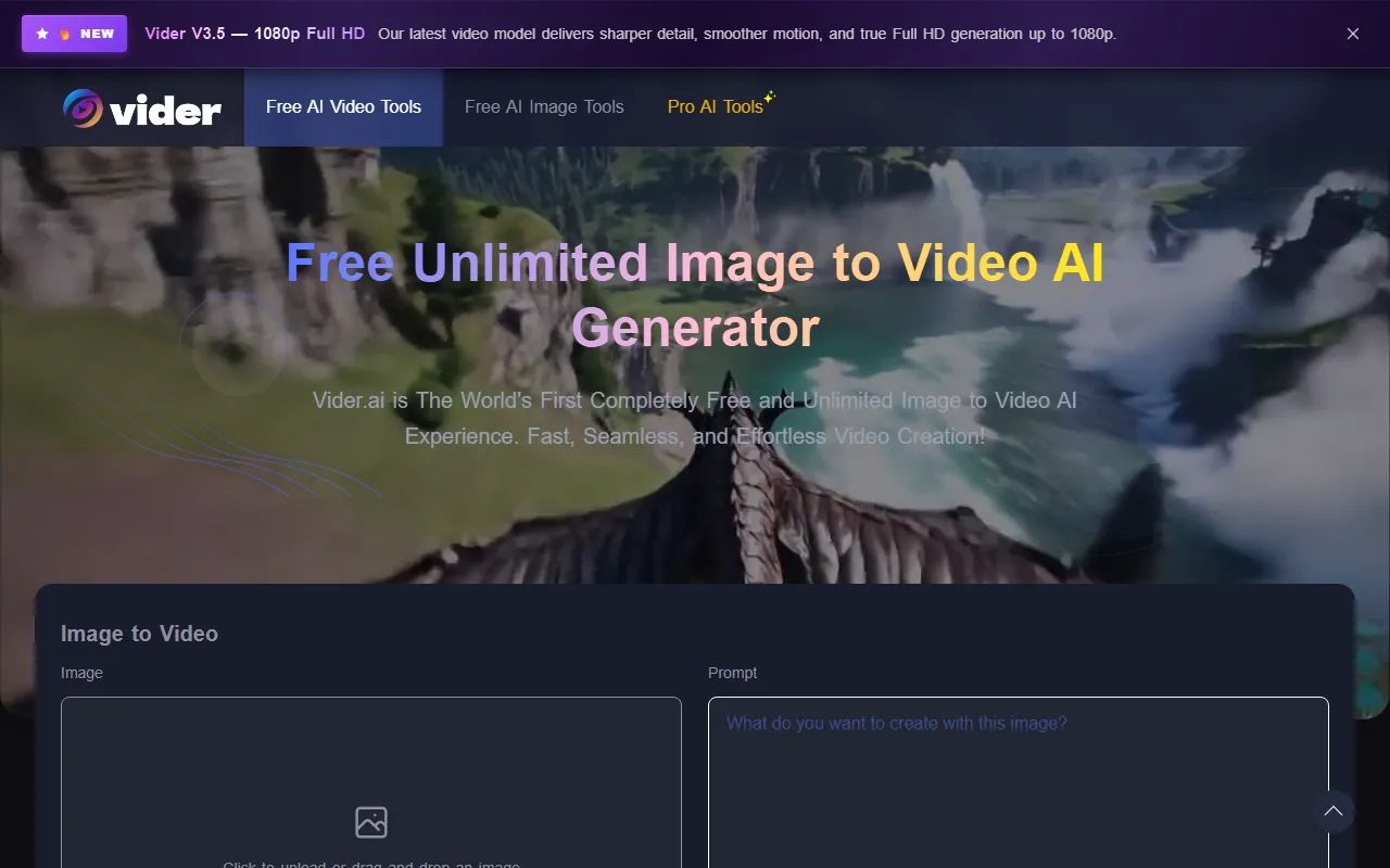 Vider: Free AI tool for unlimited, fast, high-quality video and image creation effortlessly.