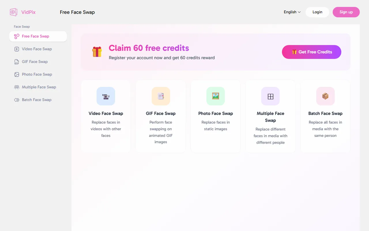 VidPix enables fast, free AI-powered face swaps in videos, photos, and GIFs with ultra-realistic results.
