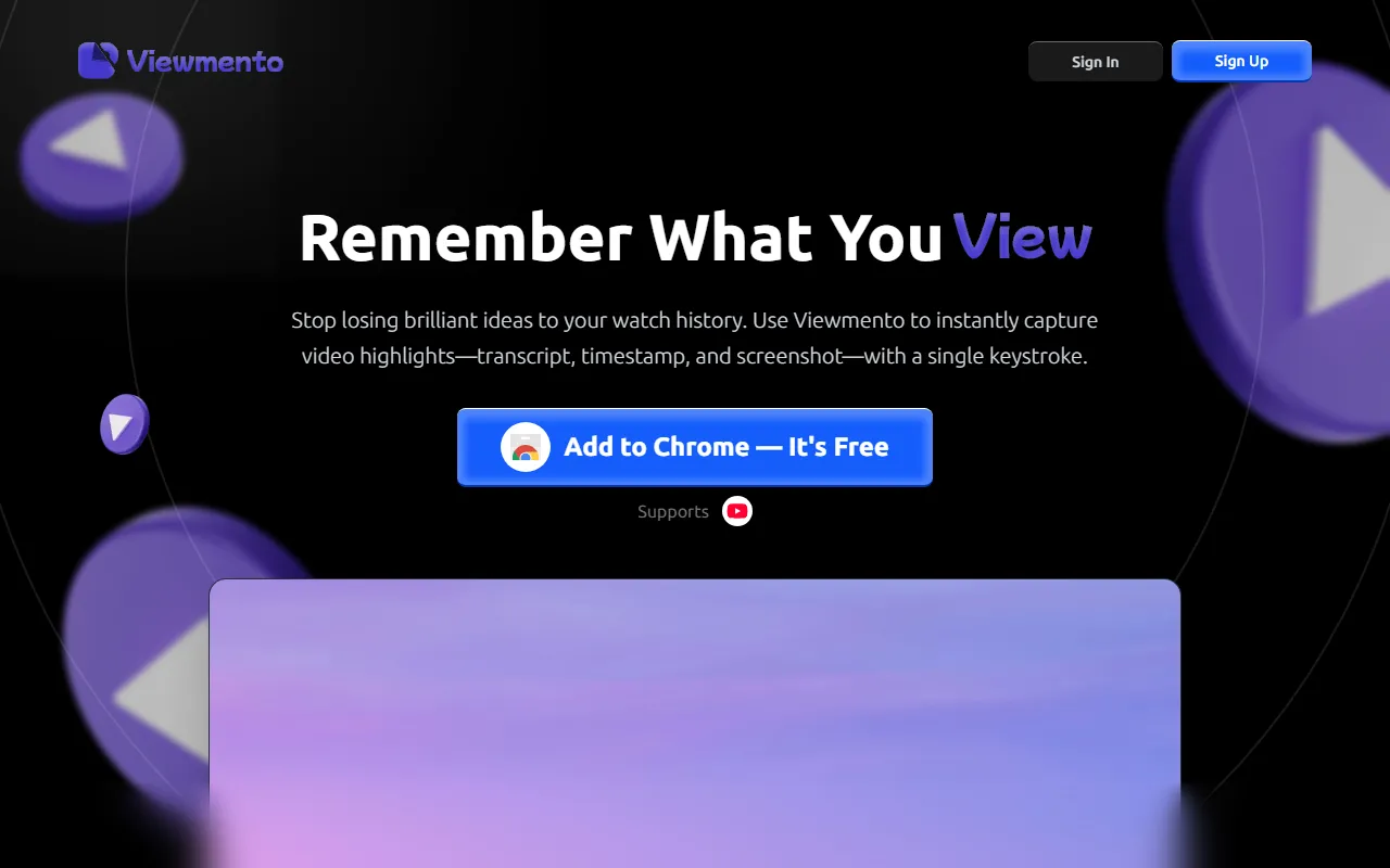 Viewmento enters the AI Productivity arena as a purpose-built AI solution for professionals, teams, and business leaders. ViewMento turns YouTube videos into searchable notes with transcripts, summaries, and key insights. In a market crowded with generic tools, Viewmento distinguishes itself through its specialized focus on delivering measurable results in productivity and task management and a user experience designed to get you productive from day one.