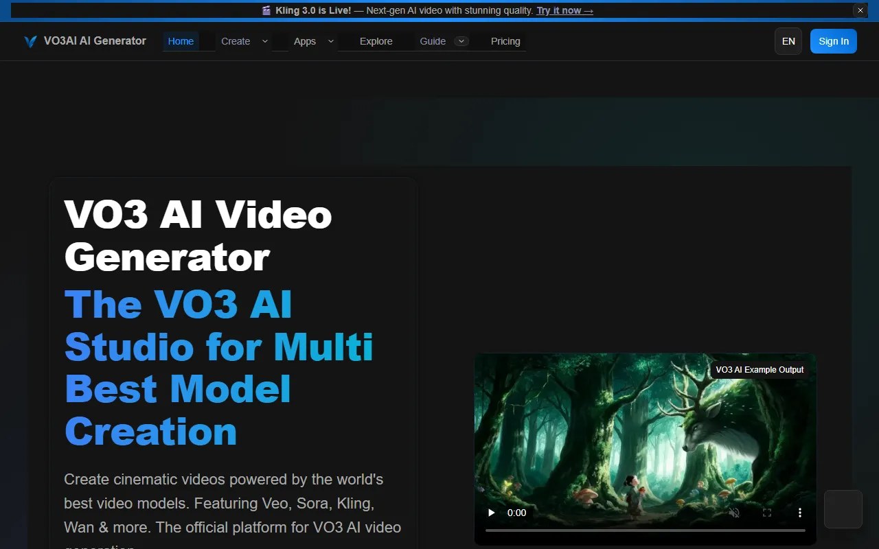 VO3 AI Video Generator creates high-quality cinematic videos fast using advanced AI models.