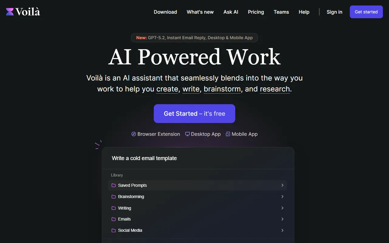 - Text generation: Voila includes a dedicated text generation engine that processes your inputs intelligently. The system learns from each interaction, delivering increasingly personalized and accurate results the more you use it.