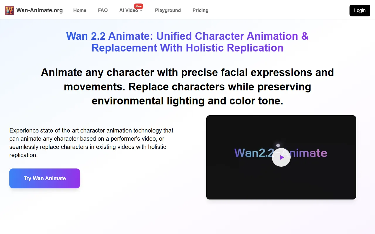 - Motion capture: The motion capture functionality within Wan 2.2 Animate | AI Character Animation Tool combines intelligent automation with user control, striking a balance between efficiency and customization that allows podcasters, musicians, and audio engineers to maintain creative oversight while saving time.