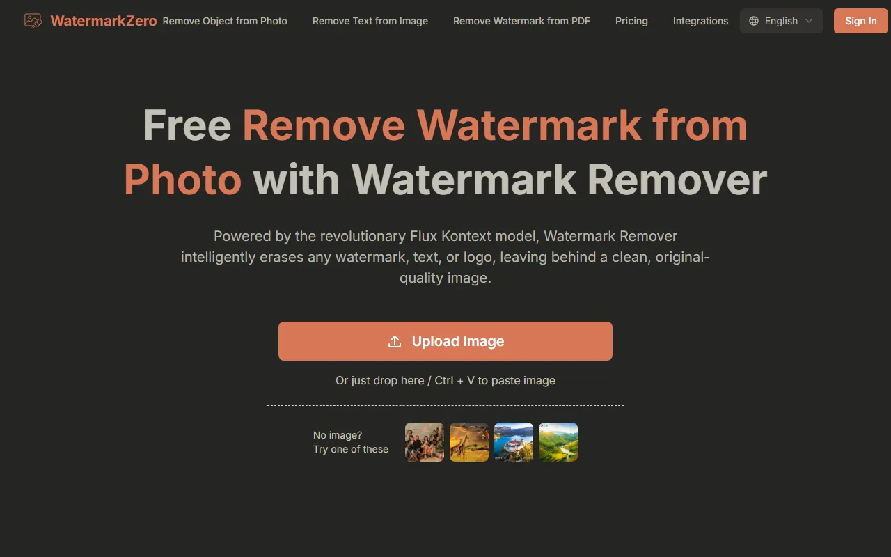 WatermarkZero removes watermarks precisely using AI, restoring high-quality, clean images free and privately.