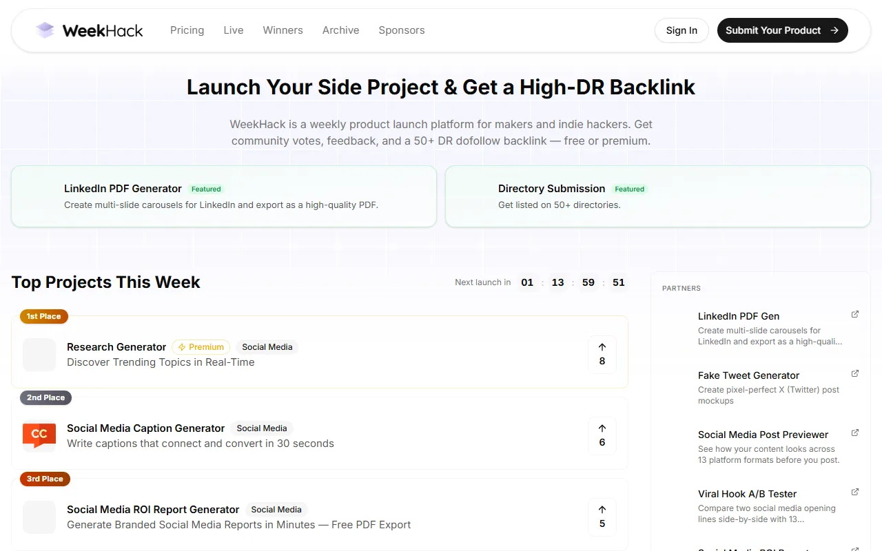 Weekhack boosts indie makers’ product launches with targeted exposure, community support, and SEO backlinks.