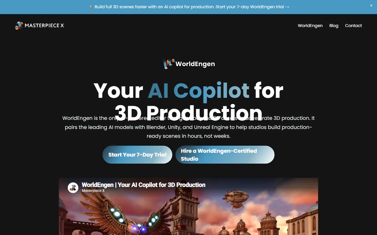 WorldEngen: AI copilot streamlining professional 3D scene creation for faster, consistent production.