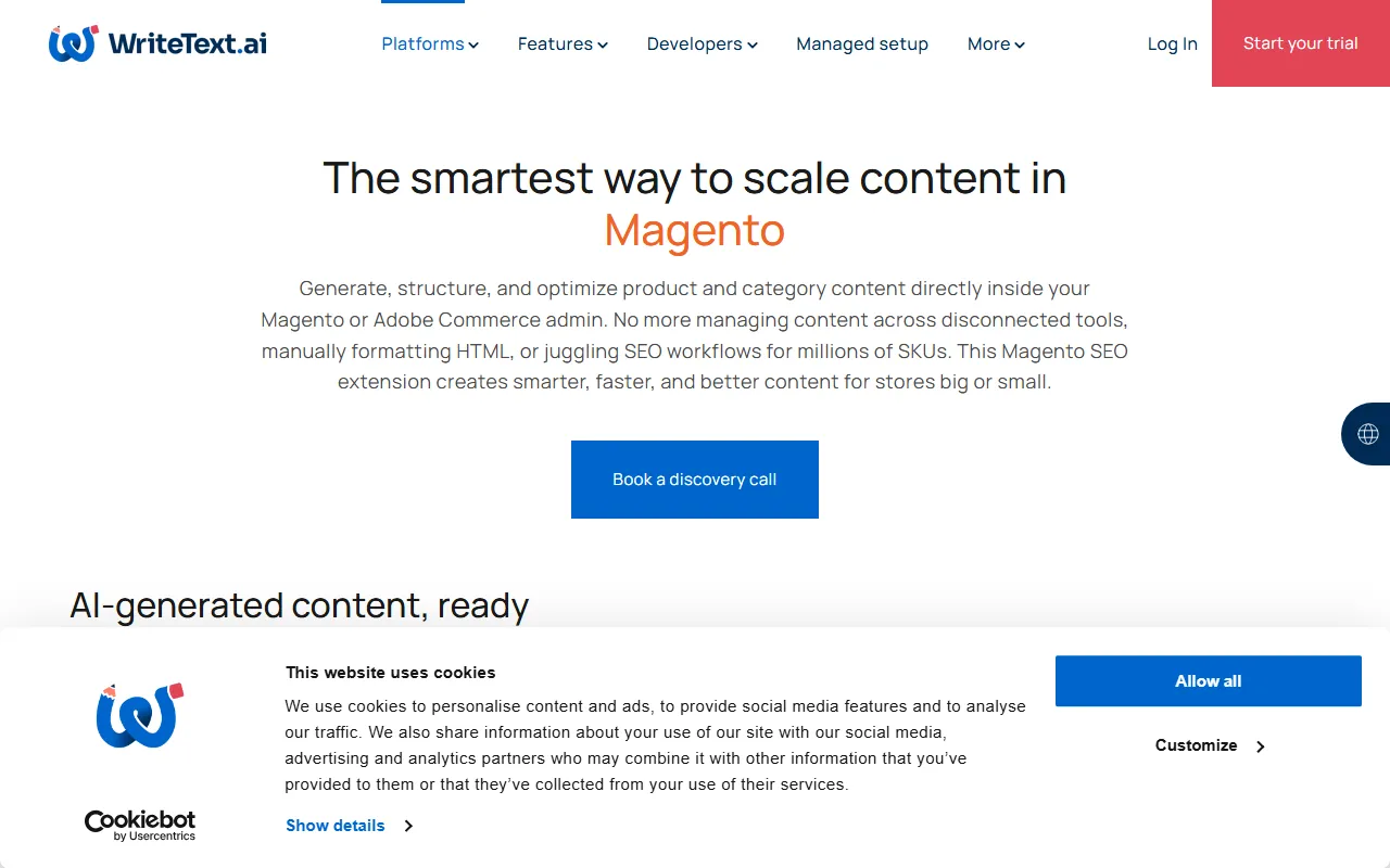 Automate Magento product descriptions with WriteText.ai—enhance SEO, streamline content, and boost engagement.