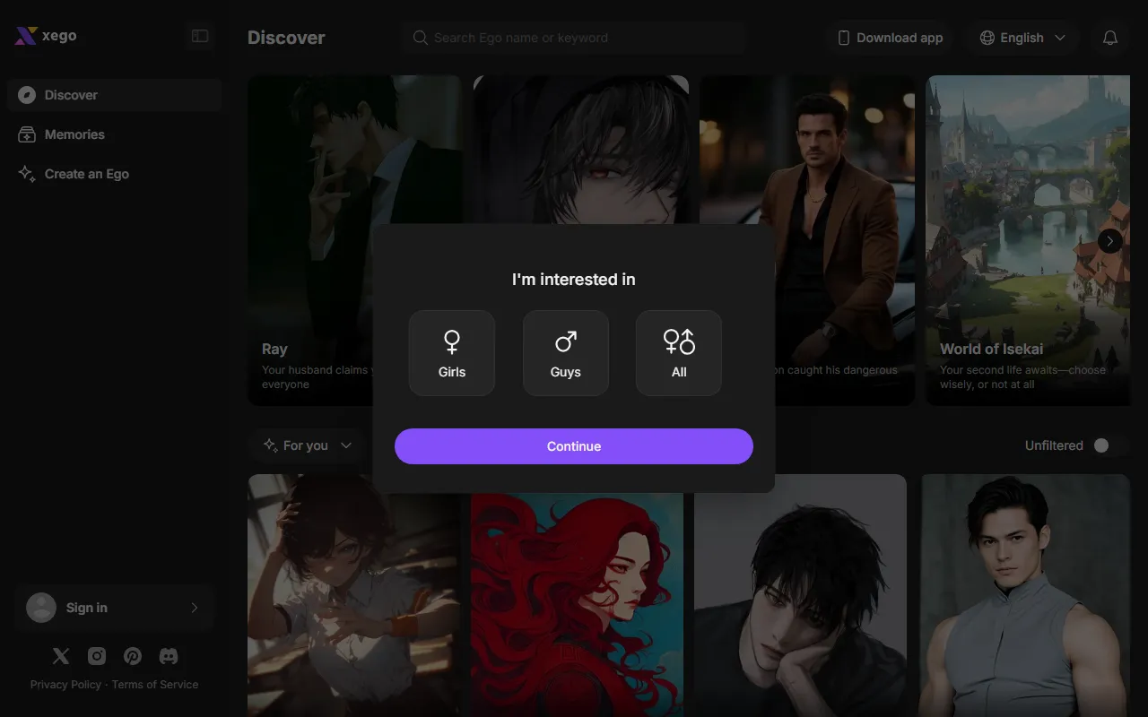 Engage in limitless roleplay with Xego AI's personalized, unfiltered characters for immersive interactions.