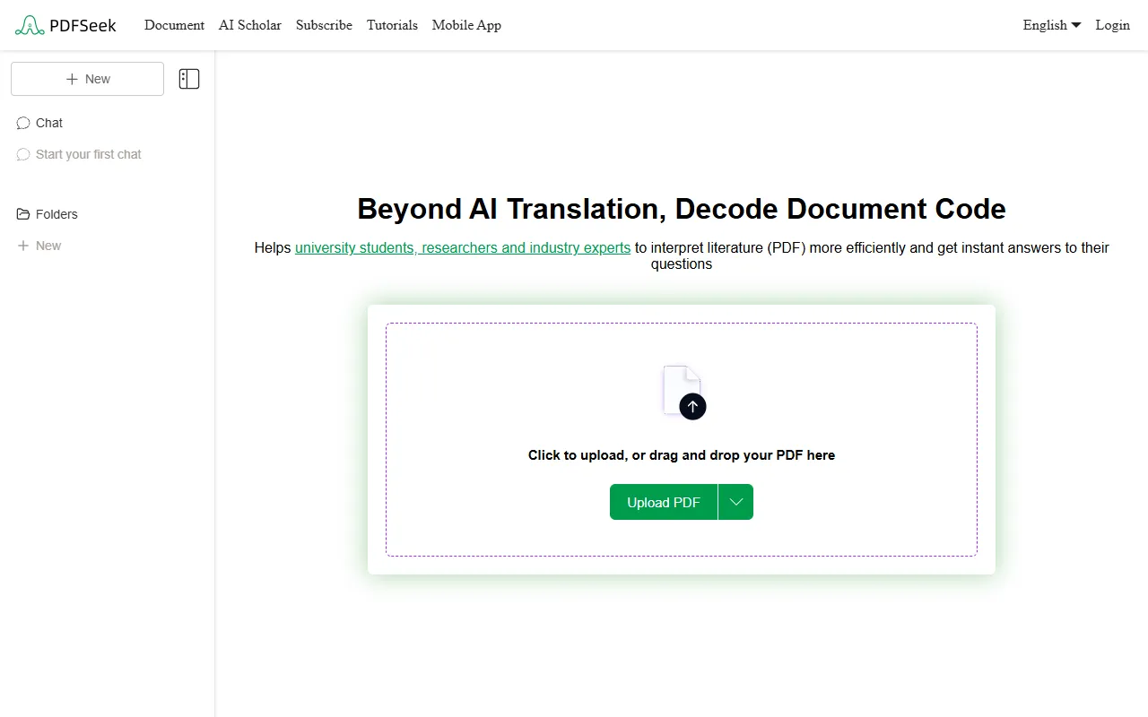 PDFSeek: AI-powered PDF tool for interactive reading, searching, summarizing, and multilingual translation.