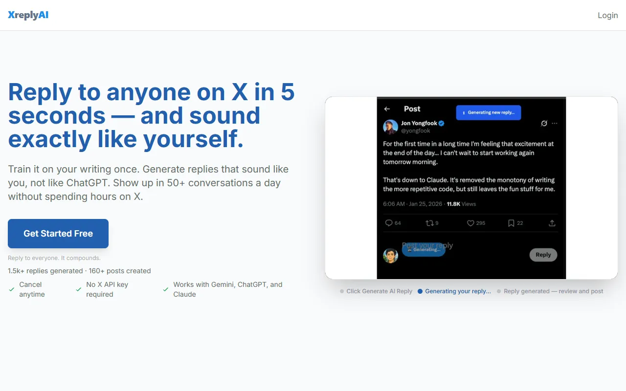 XreplyAI boosts authentic, high-volume X engagement by generating personalized AI replies quickly.