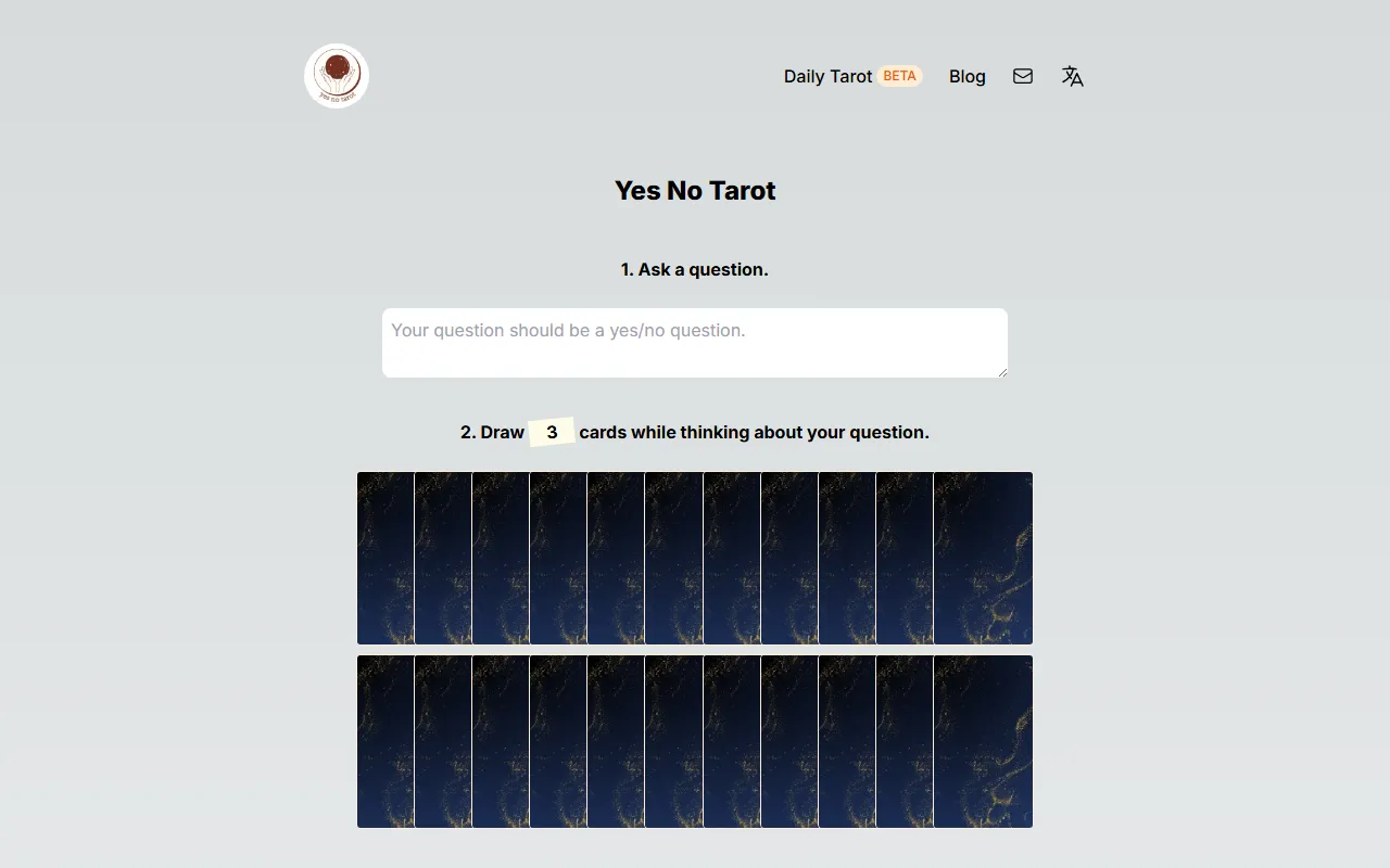 Instant yes/no tarot readings combining tradition and AI for clear, life-guiding insights. No login needed.
