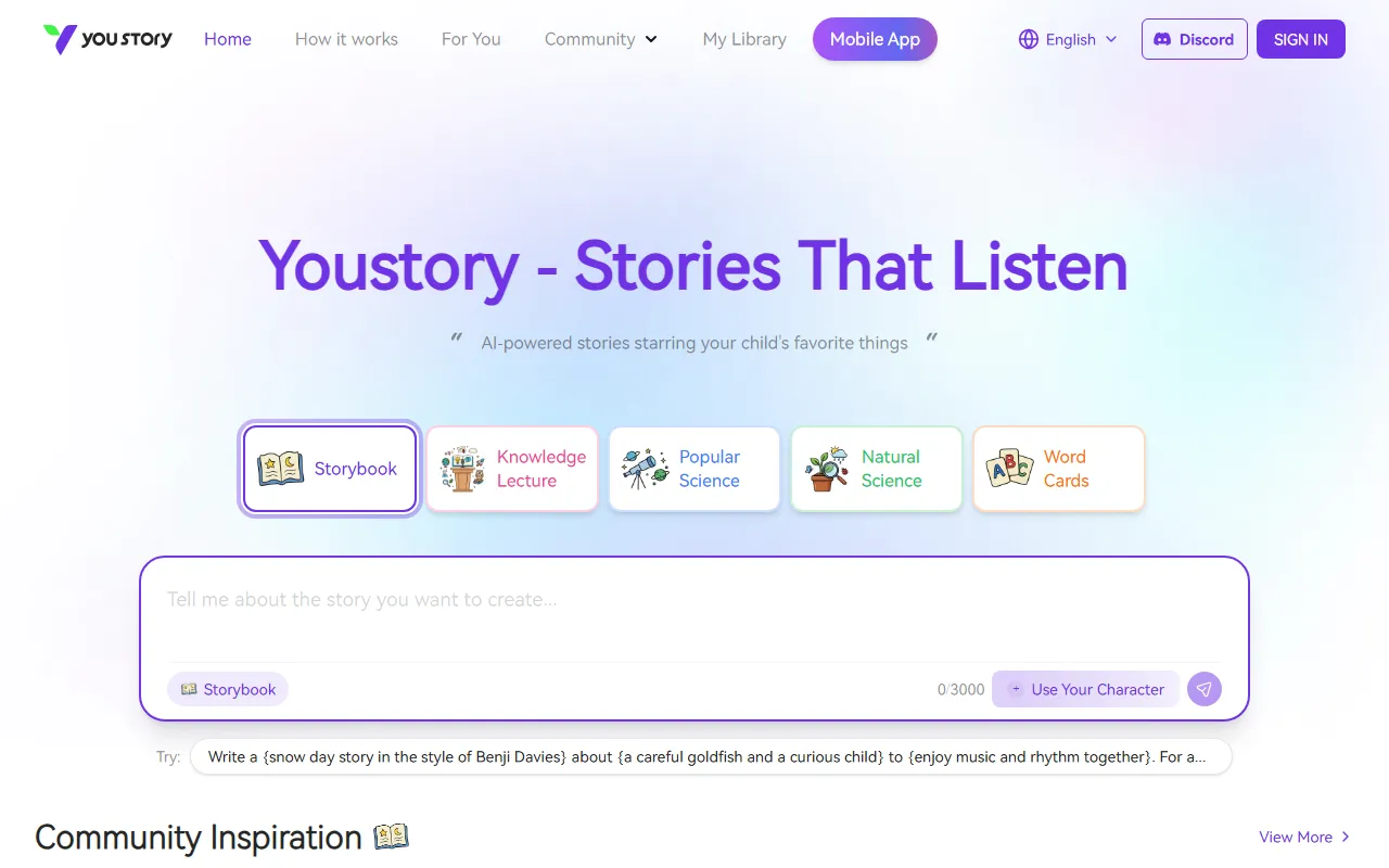 Behind the scenes, YouStory.io – AI Storybooks for Kids leverages state-of-the-art machine learning models that have been trained on vast datasets relevant to AI-powered assistance and automation. These models analyze your input, understand context and intent, and produce output that aligns with professional standards and your specific goals. The processing happens in real time, so you get results quickly without long wait times.