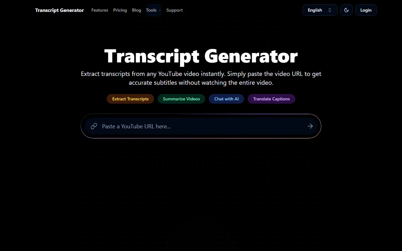 - Transcription: YouTube Transcript Generator includes a dedicated transcription engine that processes your inputs intelligently. The system learns from each interaction, delivering increasingly personalized and accurate results the more you use it.
