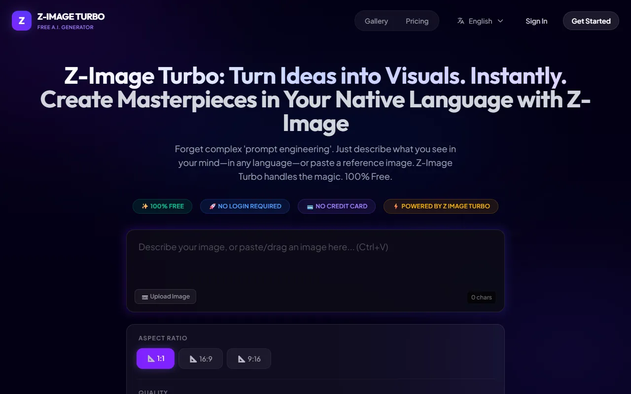 Z-Image Turbo: Instantly create high-quality AI art from simple text or photos, free forever.