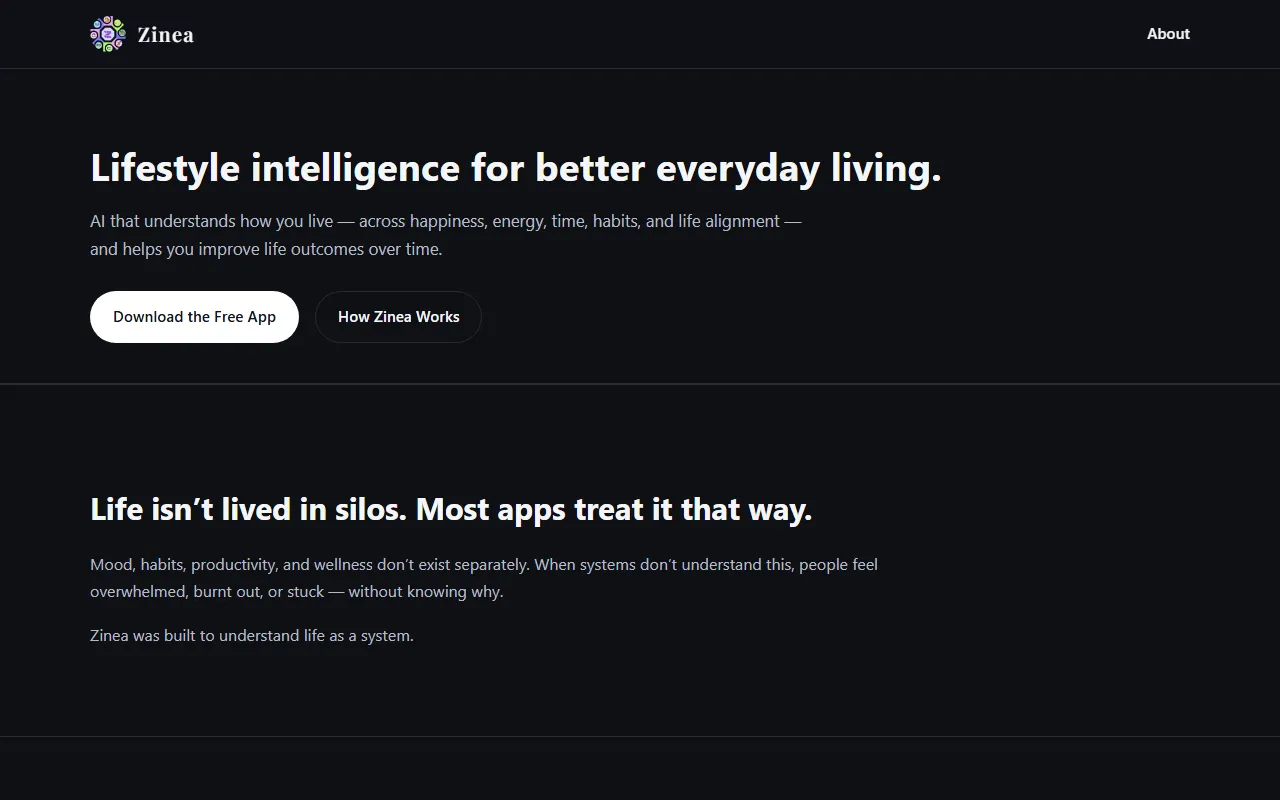 Zinea is an all-in-one AI lifestyle assistant for wellness, fitness, sustainability, and task planning.